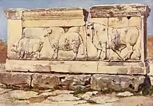 Relief depicting the three animals sacrificed at the Ambarvalia as part of a suovetaurilia (a sow, a sheep, and a bull)