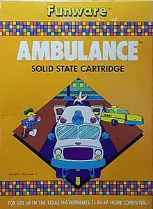Ambulance is a video game written by Kent Stevenson[1] for the TI-99/4A and released by Funware in 1983 in the United States.[2]
