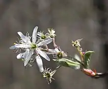 It also commonly hybridizes with other species of Amelanchier,[6] the hybrid Amelanchier × grandiflora being one example,[8] and identification can be very difficult as a result.