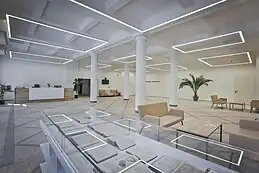 A multifunctional sports hall that encompasses 1,276 square meters. It may be configured to be three basketball courts, two volleyball courts, two tennis courts, two badminton courts, or a handball field.[6] It is nicknamed "The Bubble". |