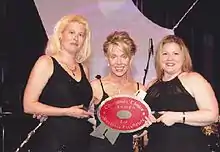 Tamara Burch (left) and DeeAnn Myers (right) accepting the 2003 Consumers' Choice Award for Business Excellence