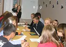 The English program at the American Home provides EFL [English as a Foreign Language] lessons for Russians. Students range in age from 7 to 60+ and come from a variety of backgrounds.(In fall 2015 classes were added for children 7 to 11 years old.) Classes for the older students are taught at 11 levels from beginning through advanced. Instruction is provided by 9 Americans and 4 experienced Russians (who teach the young children's classes and the very beginning level for the older students). Each regular class meets twice a week for an hour and a half in the evening. (The young children meet for one hour twice a week in the afternoon and early evening.) Two discussion classes meet once a week during the fall and spring terms. The six-week summer school classes meet for 2.25 hrs. three times a week. On Saturdays, the teachers present American culture through movies, lectures, and activities such as game nights and holiday celebrations.