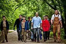 Richardson City Council member Amir Omar (in blue shirt) walking with Boy Scouts and other volunteers at a "Tree The Town" event.