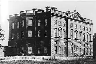 The 18th century house was the creation of Francis Charteris, second son of James Wemyss, 5th Earl of Wemyss. The family became estranged from much of Scottish society when his elder brother, David, Lord Elcho chose to back the Jacobite cause, and Bonnie Prince Charlie and, as a result of the Jacobite defeat at the Battle of Culloden in 1746 David was ineligible to inherit the estate and on the death of the 6th Earl in 1756 Francis was instead the heir. Having done a "Grand Tour" of Europe, he chose to rebuilt the old house at Amisfield in the Palladian style. He commissioned the English architect Isaac Ware to design the house, due to his skill in the Palladian style. It faced north onto the River Tyne but had a formal south frontage facing the garden and broader estate.[4] The walled garden (with cylindrical corner towers) was created in 1758 by John Henderson.[5]