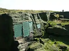 Plaques on Millstone Edge where Wrigley's ashes were scattered