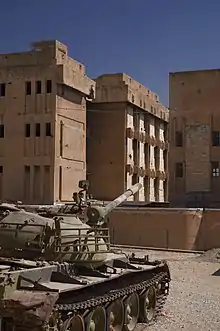 From 1979 to 1991, during Saddam Hussein's rule in Iraq, Amna Suraka was the northern headquarters of the Da'irat al-Amn/Directorate of General Security, the Iraqi Interior Ministry's intelligence agency, colloquially referred to as just Amn.[2] Many people were imprisoned there, especially students, Kurdish nationalists, and other dissidents. Many were tortured and raped. During the 1991 Battle of Sulaymaniah Iraqi security officials and soldiers retreated to the Amn headquarters which served as the Baathist stronghold in the city and held off rebels for nearly two days until the prison was captured by Peshmerga forces, following a 2 hour long assault. Rebels summarily executed 300 Amn agents, with angry civilians killing many others. One group of mothers whose sons had been killed at the compound stoned and axed to death 21 Iraqis. In total, between 700 and 800 secret policemen and soldiers were killed, although many conscripts were pardoned and allowed to return to their homes in the south by KDP chief Massoud Barzani.[3] The building has many bullet marks from that battle.[4]