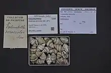 Amphissa versicolor is a species of small sea snail in the family Columbellidae. It is native to the Eastern Pacific.[1]