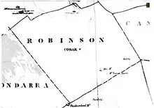 - ↑ Map of the County of Robinson , (New South Wales. Department of Lands, 1942).