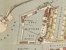 Oosterdok 1875 fragment showing three dry docks