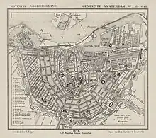 Amsterdam dry dock 1 was ordered at shipyard J.R. Boelen en Zonen. By May 1842 it was under construction.[50] On 6 August the dry dock stoom-drijfdok was launched from the Oude Compagnie-werf,[51] probably meaning the old VOC shipyard at Oostenburg Island. The dry dock would be commissioned on 23 November 1842. The location was the so-called 'Pijp' in the Oosterdok of Amsterdam.[49] This is the Dijksgracht