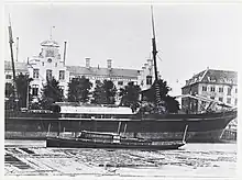 Paul van Vlissingen thus founded the Stoomschroefschooner Reederij (Steam screw schooner line)) to operate a line to London. The British St Petersburg Steamship Company had opened a line between London and Amsterdam in October 1847.[43] When it heard about Van Vlissingen's plans it threatened that it would open a line from Amsterdam to Hamburg. In March 1849 the Stoomschroefschooner Reederij got its concession.[44] The Gouverneur van Ewijck, built by Van Vlissingen en Dudok van Heel, was one of the ships used on the London line in 1849.[45]