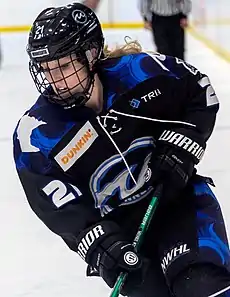 She stayed with the Whitecaps as the team joined the NWHL, scoring 10 points in 15 games in 2018–19.[4] She would score in the championship games as the Whitecaps won the Isobel Cup for the first time.[5]