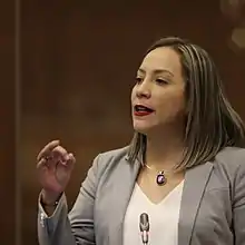 The President of Ecuador Guillermo Lasso brought in an unusual constitution clause (number 148) known as Mutual death in May 2023 when he knew that he was about to be impeached. This required all of the National Assembly members to stand for re-election.[6] Following her restoration to the assembly she was voted in as a member of the Assembly's Commission into Education, Culture, Science, Technology, Innovation and Ancestral Knowledge. The other members were Mauricio Zambrano, Jahiren Noriega, Zolanda Pluas, Nathaly Morillo, Dallyana Passailaigue, Cecilia Baltazar, Hernán Zapata and Juan Carlos Camacho.[7]