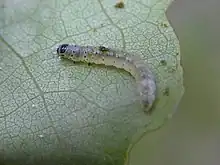 Pupation takes place in a cocoon within a rolled leaf of the foodplant.[3]