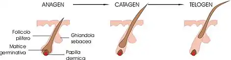 Anagen effluvium is the pathologic loss of anagen or growth-phase hairs. Classically, it is caused by radiation therapy to the head and systemic chemotherapy, especially with alkylating agents.[1][2]:753–4