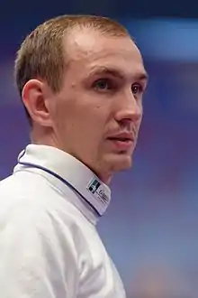 In the 2012 European Championships at Legnano Ukraine fell against Hungary, but overcame France in the small final to take the bronze medal.[2] The scenario was repeated in the 2013 edition at Zagreb.[3] At the World Championships in Budapest Herey lost in the first round to Italy's Enrico Garozzo. In the team event Ukraine edged past Russia in the table of 16, Herey suffering a 10–5 loss against Pavel Sukhov.[4] then defeated the Czech Republic and France to meet Hungary in the final. They were overcome 42–38 and took a silver medal, the best result in Ukrainian history for men's épée.[4]