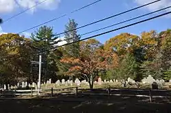 The cemetery is the only surviving civic element of Centerville's early colonial history.[2] The area was originally known as Chequaquet, and remained sparsely settled in the 18th century. What development there was centered along this stretch of Phinney's Lane, and included a gristmill, tavern, schoolhouse, and the village's first meetinghouse, which was built in 1796. None of these structures survives, but a private house (the William and Jane Phinney House) dated c. 1730 does.[3]