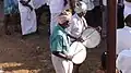 The Murasu, or the drum was the most popular percussion instrument. During festivals, the sound of Murasu conveyed joy and gaiety. Muzhavu, another percussion instrument accompanied singers. The drum was also used as the war-drum, calling people to arms. Mathuraikkanci mentions that the murasu was one of the prized possessions captured from the defeated enemy in the battlefield. Malaipatukatam describes the method of constructing and tuning the murasu. The sides were covered with skin, which were kept in position by leather straps. Malaipatukatam also mentions other percussion instruments such as udukkai, a palm-sized drum, Muzhavu, Siruparai and Tattai. The sound tattai resembled the croaking of a frog. This was a crude folk instrument made using a bamboo stick. Numerous slits were made across the stick and sound was produced on it by striking it on a stone or any other hard surface. In the Kurincippattu peasant women use tattai to scare the birds from the paddy field. A well-known percussion instrument is the mridangam (mathangam). It's a double headed drum used to accompany the veena (Yaazh) and the flute among other instruments.