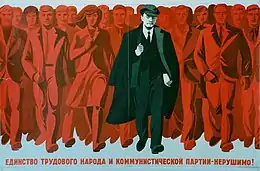 And the Battle Is Going Again (Russian: И вновь продолжается бой, romanized: I vnov prodolzhaetsya boy), also known as And Lenin Is Young Again (Russian: И Ленин такой молодой, romanized: I Lenin takoy molodoy), is a Soviet patriotic song released in 1974 about the October Revolution and Vladimir Lenin. It was composed by Aleksandra Pakhmutova to lyrics written by her husband Nikolai Dobronravov,[1] with the most known performance of the song being done by Soviet singers Leonid Smetannikov, Joseph Kobzon, and Lev Leshchenko. The song was composed for the closing of the 17th congress of the Komsomol, but shortly after it was performed there it was banned by Soviet censors due to it being heavily influenced by rock music.[2] The song was unbanned a year later, after which it became popular.[2] The song was also performed by Lev Leshchenko at the finals of Pesnya goda in 1975.[3]