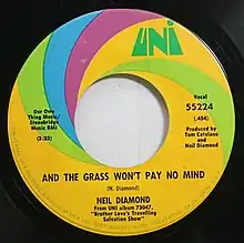 "And the Grass Won't Pay No Mind" is a song written by Neil Diamond and recorded in 1969 on his Brother Love's Travelling Salvation Show LP. It was also featured on his live LP Hot August Night. Diamond's original became a minor hit in Australia before the song became a U.S. and Canadian hit for Mark Lindsay in the fall of 1970.