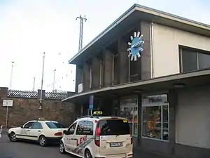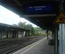 Andernach station is the transportation hub of the city of Andernach in the German state of Rhineland-Palatinate. It is a mid-sized station with thousands of passengers each day. It is currently classified by Deutsche Bahn as a category 3 station. It has four passenger platforms (tracks 1, 2, 3 and 24), three with a length of more than 280 m,[4] and sidings and freight tracks.[5] It is on the Left Rhine line (German: Linke Rheinstrecke) and is the terminus of the Cross Eifel Railway (Eifelquerbahn). In addition to passenger operations, the station has container and freight operations to the east of the station, particularly serving the tin plate manufacturer, Rasselstein.