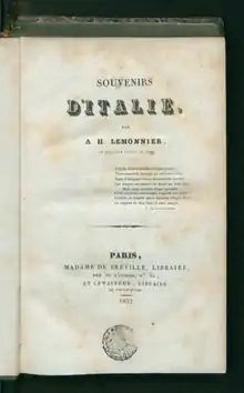 - André Hippolyte Lemonnier (1832). Souvenirs d'Italie (in French). Paris: Madame De Bréville et Levasseur.