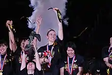 In 2019, Drews signed with JT Marvelous to play in the Japan V.League Division 1 (V1), replacing Serbia women's national volleyball team outside hitter Brankica Mihajlovic.[10] Due to prior commitments with the USA national team (participation in the 2019 Women's NORCECA Volleyball Continental Championship), she missed the season's first two games. In her debut game with the team, she registered 32 points against Ageo Medics.[11] For her performance throughout the tournament, Drews was named Best Opposite and Most Valuable Player.[12]