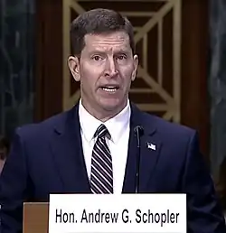 - ↑ "PN2383 – Nomination of Andrew G. Schopler for The Judiciary, 117th Congress (2021–2022)". www.congress.gov. July 14, 2022. Retrieved July 15, 2022.