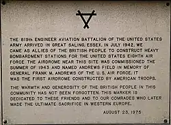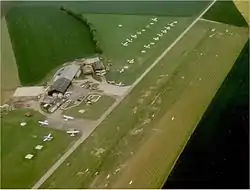 Andrewsfield Aerodrome (ICAO: EGSL) is located 4 NM (7.4 km; 4.6 mi) west northwest of Braintree, Essex, England, formerly RAF Andrews Field. Both the grass runways are 18 m (59 ft) wide and at night serve as a single 36 m (118 ft) runway. It has one sock which is of an orange colour.