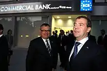 Kostin and Russian President Dmitry Medvedev at an opening ceremony of the Russian Commercial Bank in Cyprus in 2010