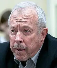 Makarevich performed for Ukraine's internally displaced people during the war in Donbass in the Ukrainian town Svyatogorsk in August 2014.[8] Deputy of the State Duma Yevgeny Alexeyevich Fyodorov vowed to strip Makarevich of all Russian state honors, describing his performance in Svyatogorsk as "collaborating with the fascists".[8][9] Later that month, NTV aired a documentary titled 13 Friends of the Junta in which Makarevich was described as a "traitor" and supporter of fascists. The Moscow Times reported that footage of his concert "was merged with images of the fighting that he supposedly endorsed. The program never mentions that the concert was for the benefit of Ukraine's internally displaced children."[10]