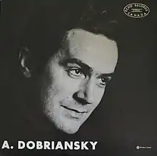 A proponent of Ukrainian music in the United States, he frequently performed and conducted works by Ukrainian composers.[23] In 1968, he recorded an album of songs composed by the popular Ukrainian musician Bohdan Vesolovsky, entitled Andrij Dobriansky with songs by J. B. Vesolovsky.[24] For decades, he performed as a soloist with the New York-based Dumka chorus[25] and served as artistic director and consultant to many Ukrainian musical productions, including the Ukrainian Composers Series at the Town Hall[26] and the Ukrainian Institute of America,[3][27][28] From 1980 until his death, Dobriansky was a liturgical cantor as well as the conductor of the Andrey Sheptytsky choir at Saint George Ukrainian Catholic Church in New York's Little Ukraine.[29]