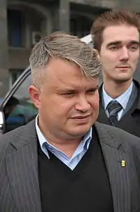 Andriy Mokhnyk (Ukrainian: Андрій Володимирович Мохник) is a Ukrainian politician, Deputy Chairman of the right-wing All-Ukrainian Union "Freedom" party, and a former Minister of Ecology and Natural Resources of Ukraine .