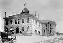The state then ordered a rack of rifles that was to be set up on a frame by an Eastern ordnance foundry.[14][15] The 1000-pound (450 kg) execution machine, which was called the "shooting gallery of steel", included three Savage Model 1899 .30-30 caliber rifles with Maxim silencers.[8] When the device arrived at the prison, Cowing no longer wanted to have any part of the execution and resigned.[8] Denver S. Dickerson, a former Nevada governor and prison reformer, was appointed as the new warden.[16] On May 13, 1913, Prison Chaplain Lloyd B. Thomas of St. Peter's Episcopal Church, Carson City, Nevada, made an unsuccessful appeal for commutation on Mircovich's behalf with the Board of Pardons.[5]