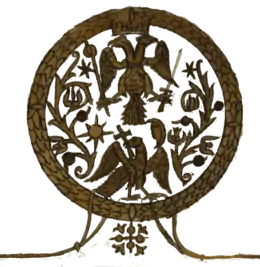 Şeytanoğlu regarded himself as an heir to the Kantakouzenos, one of the most prominent aristocratic clans in the late Byzantine Empire. This lineage is often described as spurious by both early observers and modern historians.[5] Some researchers have nevertheless endorsed the genealogical claim, leading back to the 14th-century Emperor John VI.[6] Several of these authors agree that Şeytanoğlu's great-grandfather was George "Sachatai", who was in turn the great-grandson of John VI.[7] Overall, historian Tom Papademetriou argues, the reconstruction of this genealogy remains "difficult", with no trustworthy indication of who Şeytanoğlu's father was.[8] Some period sources do however describe Andronikos' other ancestors and relations. A number of records mention that Şeytanoğlu was closely related with a Muslim Kantakouzenos, the scribe Ahmed, who succeeded İbrahim Peçevi as defterdar of the Danube.[9] The family also had a branch claiming to be Palaiologoi, of whom Constantine was Şeytanoğlu's alleged nephew.[10] Şeytanoğlu, Andronikos, and other figures from both branches of the family used seals marked with the double-headed eagle, deriving from Byzantine imperial usage.[11]