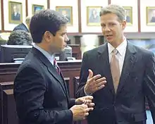 Marco Rubio and Andy Gardiner reviewing papers in 2004