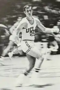 Hill won three straight National Collegiate Athletic Association (NCAA) championships as a member of the varsity UCLA Bruins under Wooden.[15] However, the 6-foot-1-inch (1.85 m) backup guard played sparingly, and took just 99 shots in those three years.[5][16][17] UCLA had many talented players during that era, and many of those who ended up being reserves arguably would have started on other teams.[18]