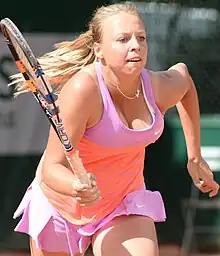 She posted strong results at the Junior Grand Slam championships, reaching the semifinals of the French Open girls' singles, losing to eventual champion Annika Beck.[14] At Wimbledon, she reached her second consecutive junior major semifinal, where she lost to the eventual champion Eugenie Bouchard.[15]