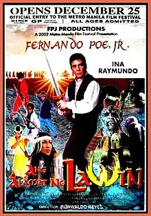 Ang Alamat ng Lawin (lit.'The Legend of the Hawk') is a 2002 Filipino fantasy swashbuckler film produced and directed by Fernando Poe Jr. — his final directorial work.[3] The film stars Poe and Ina Raymundo along with new childstars Cathy Villar, Franklin Cristobal, Ryan Yamazaki, and Khen Kurillo.[4]