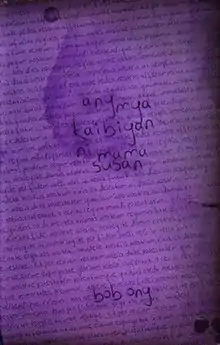 Ang Mga Kaibigan ni Mama Susan[1] (transl.Mama Susan's Friends) is a 2010 mystery novel by Filipino writer Bob Ong published in 2010 by Visprint Inc. It is Ong's eighth book, and his first attempt in the horror/suspense genre.