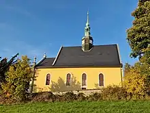 The Angel Church (German: Engelkirche) is an Evangelical-Lutheran church in Hinterhermsdorf which overlooks this Saxon village. Its name, unusual for a Protestant church, comes from the Baroque baptismal angel that decorates the interior.