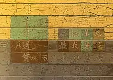The Angel Island Chinese Monument (37°52′13″N 122°25′32″W / 37.87023°N 122.42563°W) is a monument dedicated to Chinese immigrants who entered the United States through the immigration station.[14] It was completed in 1978 and placed in 1979.[15] The monument's inscription says "Leaving their homes and villages, they crossed the ocean only to endure confinement in these barracks. Conquering frontiers and barriers, they pioneered a new life by the Golden Gate."[14] The inscription is reminiscent of Chinese poems that were carved into the barracks walls of the immigration station by detained Chinese immigrants.[16]