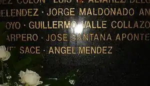Name of Sgt. Angel Mendez inscribed in "El Monumento de la Recordación"
