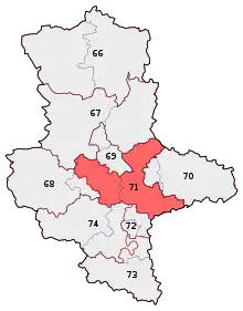 Anhalt is an electoral constituency (German: Wahlkreis) represented in the Bundestag. It elects one member via first-past-the-post voting. Under the current constituency numbering system, it is designated as constituency 71. It is located in central Saxony-Anhalt, comprising the Anhalt-Bitterfeld district and most of the Salzlandkreis district.[1]