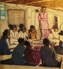 In 1949 Willcox traveled through India. Her sketches record the First All India Conference held in Jaipur after the end of British rule; and a peace conference at Sevagram, Mahatma Gandhi (Mohandas Karamchand Gandhi)'s ashram, on the first anniversary of his assassination.