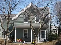 The 1+1⁄2-story wood-frame cottage was built in 1856, and is a well-preserved example of Gothic Revival styling. This instance in particular is notable for its drip-style bargeboard decoration. The house was built as part of the initial subdivision of the Strawberry Hill area.[2] Other Gothic features, including finials on the gable and drip molding surrounding the windows, have been lost.