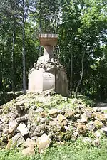 The first monument of Anna Dorota Chrzanowska erected in Trembowla in 1683 was last mentioned in 1829. Subsequently, in 1900, a second one was erected on the same site, work of Terebovlian sculptor J. Bohenek. It was destroyed in 1944 by Soviet troops. In 1982, the hill where monument once stood was rebuilt, and the slab was built, and the plate that remained undamaged was secured. On this spot opening of the third monument took place in July 2012, work of Roman Vilgushinsky.[2]