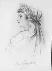 This was followed by engagements at the Schauspielhaus Berlin (1878-1879), where she made her debut as The Maid of Orleans, and in Frankfurt (1880-1883). In addition, Haverland made numerous guest appearances with the ensemble of the Meiningen Court Theatre, including tours to London and St. Petersburg. Another engagement led her to the Deutsche Theater Berlin in 1883, where she played beside Josef Kainz. Contemporaries praised her performance of Antigone, Iphigenia, Sappho and Medea.[1] In 1892, Haverland made a guest appearance in New York City, where she played the leading role in Ibsen's Hedda Gabler at the Amberg's Theatre. It was the first German performance of the play in America; Ibsen chose himself Haverland as the actress when the play was first performed at the Lessing Theatre in Berlin in February 1891.[3][4] Haverland was in contact with other artists of her time, including Theodor Fontane. In the Berlin novel Allerlei Glück, which has remained in fragment form, Fontane placed the character of the theatre-loving Bertha, who is enthusiastic about the role of Iphigenie and chats with her friend Hanke about various plays, on a posthumous journey to Haverland.[5] Johannes Schilling took the arm of Germania of the Niederwalddenkmal from Haverland's arm as a model.[6]