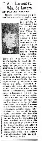 Anna Larroucau's obituary, Newspaper: Los Andes, Mendoza, Argentina, September 4, 1956