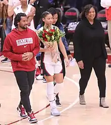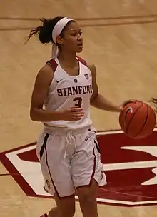 In her junior year, Wilson averaged 2.7 points per game over thirty-two games played and three games started as Stanford won the 2019 Pac-12 Conference women's basketball tournament but lost in the Elite Eight round of the 2019 NCAA Division I women's basketball tournament to the Notre Dame Fighting Irish 84–68.[3][21] As a senior, she averaged 2.5 points per game in a bench role as Stanford lost in the final of the 2020 Pac-12 Conference tournament to the Oregon Ducks, and the NCAA tournament was cancelled due to the COVID-19 pandemic.[3][22] Because of the health issues in her freshman year, she was granted another season of eligibility at Stanford under the NCAA's hardship wavier rule[lower-alpha 1] after an appeal of an initial denial.[23]